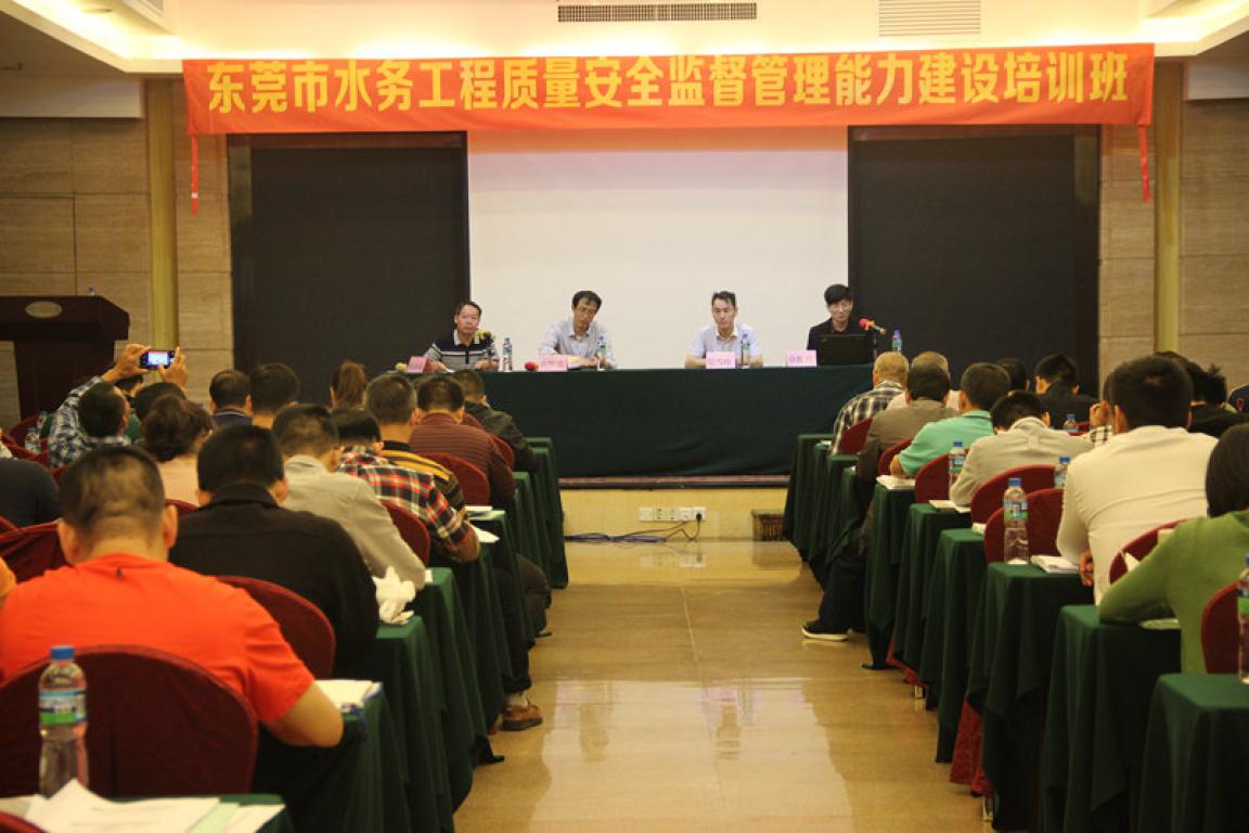 根据东府办《关于调整市直有关部门职能的通知》有关职能下发的具体工作要求,为确保放得下、接得好、开展好下发后水务工程质量安全监督管理工作,为加强我市水务监督队伍的建设,经水务局同意,由东莞市水务工程质量安全监督站主办、东莞市水务行业协会承办,4月25日至26日在广彩城福地厅举办为期一天半的东莞市水务工程质量安全监督管理能力建设培训班。市水务局工程建设管理科莫雪峰科长出席了培训班开班讲话,参加本次培训学习的有:各镇(街道)园区涉水事务有关部门、市直属单位各主管领导、技术负责人、监督员,共有人员130人。培训内容主要包括水利工程建设质量监督管理、水利工程安全监管能力建设、水务工程监督登记前期工作具体内容、工程主体质量行为监督等。